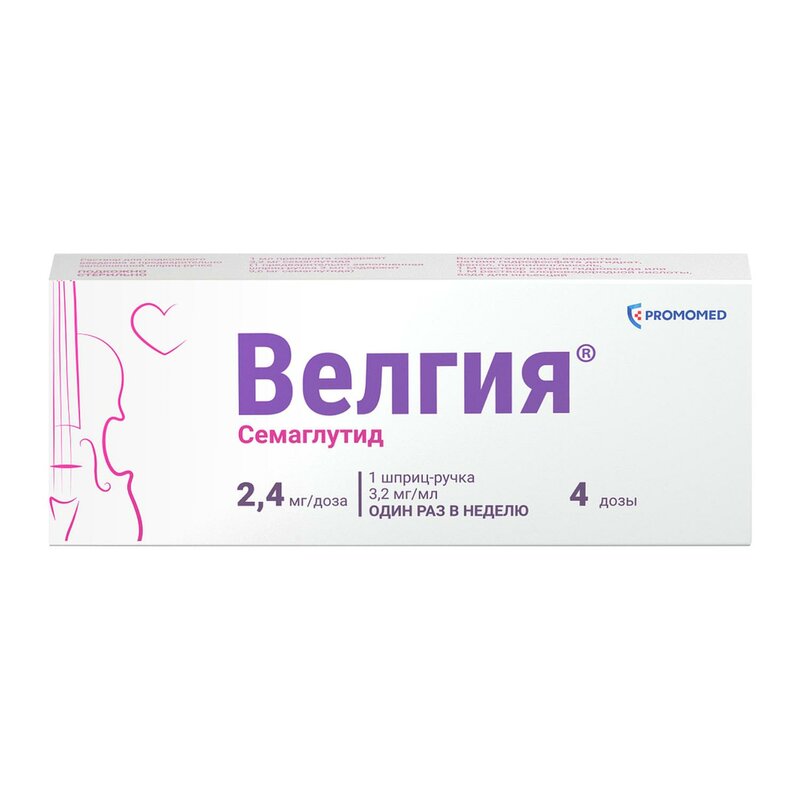 1 доза: семаглутид 2.4 мг, вспомогательные вещества - натрия гидрофосфата дигидрат, фенол, пропиленгликоль, 1М раствор натрия гидроксида или 1М раствор хлористоводородной кислоты, вода д/и.
