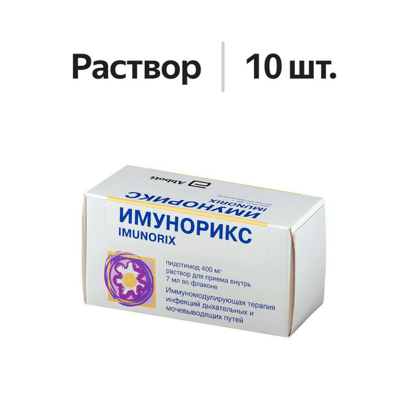 Пидотимод 400 мг. Вспомогательные вещества: натрия хлорид - 5.6 мг, натрия сахаринат - 5 мг, динатрия эдетат - 3.5 мг, трометамол - q.s. до pH 6.5, метилпарагидроксибензоат натрия - 10.3 мг, пропилпарагидроксибензоат натрия - 1.6 мг, сорбитол 70% - 2500 мг, ароматизатор фруктовый (с запахом лесных ягод) - 21 мг, краситель антоцианин - 5.6 мг, краситель пунцовый [Понсо 4R] - 0.5 мг, вода очищенная - до 7 мл.