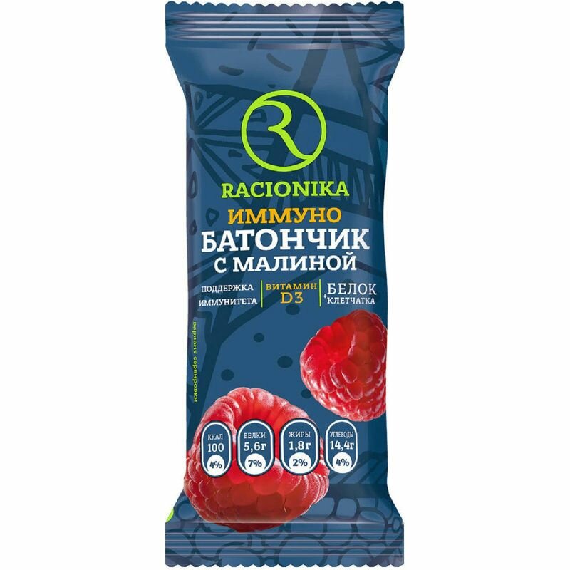 Продолжительное чувство сытости обеспечивает высокое содержание растительного белка (17% от общей энергетической ценности), богатого незаменимыми аминокислотами. Пищевые волокна эффективно блокируют чувство голода путём увеличения вязкости и объема пищевой массы в желудке, что приводит к насыщению после меньшего количества пищи и дальнейшему подавлению аппетита. Дополняют действие белки, эффект которых имеет не механическую, а химическую природу. Состав батончика Racionika Diet оптимизирован для достижения максимального чувства сытости, а низкое содержание легкоусвояемых (высокогликемичных) углеводов позволяет сохранить низкую калорийность. Высокая питательная ценность батончика позволяет снизить количество потребляемых продуктов (снижая таким образом и калорийность), а также уменьшить тягу к перекусам на длительное время. Эти факторы благоприятно сказываются на физической форме, а для предотвращения дефицита питательных веществ в состав батончика добавлены витамины В1, В3, В6, а также микроэлементы — кальций, магний, цинк.