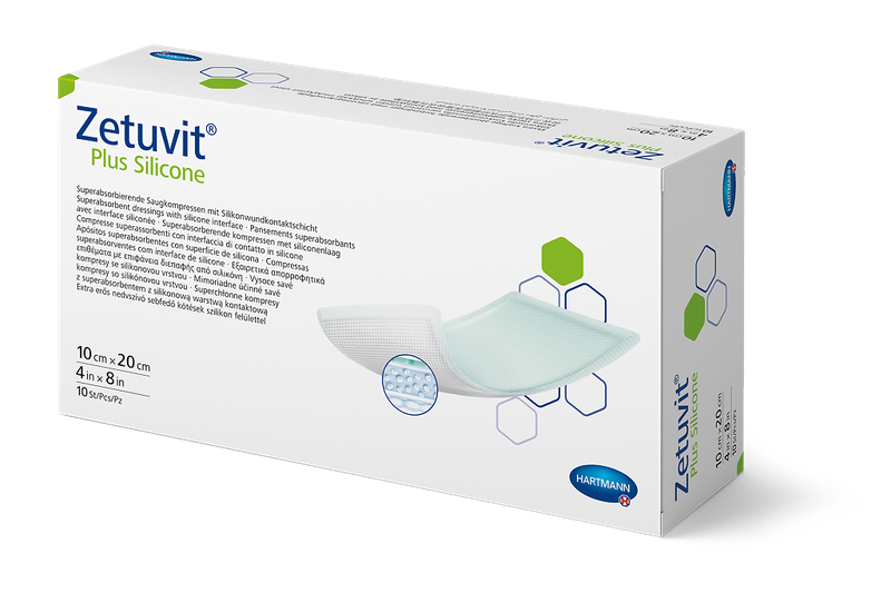 Повязка суперабсорбирующая стерильная Zetuvit® plus silicone /Цетувит® плюс силикон представляет собой стерильную повязку для лечения острых и хронических ран с умеренной и значительной экссудацией. Силиконовый слой, имеющий контакт с раной, обеспечивает легкую фиксацию и практически безболезненное атравматичное удаление. Абсорбирующая подушечка впитывает и удерживает экссудат.