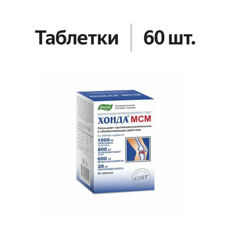 Каждый компонент, эффективный по отдельности, в комплексе обеспечивает усиленный эффект, поэтому Хонда МСМ оказывает противовоспалительное, обезболивающее, хондропротекторное действия и способствует: улучшению подвижности и гибкости суставов, эластичности связок и сухожилий; снижению риска разрушения хрящевой ткани; естественному восстановлению хрящей; уменьшению болезненности в области суставов и позвоночника.