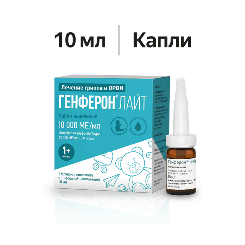 Генферон лайт капли назальные 10000 МЕ/мл + 0.8 мг/мл 10 мл