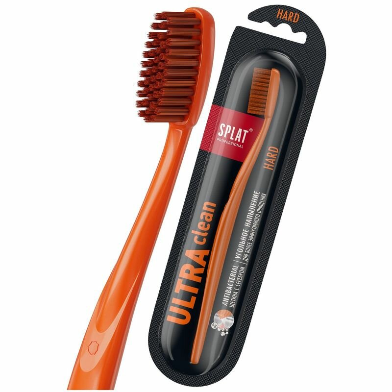 Инновационная зубная щетка жесткая Splat Ultra Clean Жесткая для комплексного ухода за полостью рта. 2000 закругленных жестких щетинок. Закругленные сапфирами кончики безопасно полируют эмаль. Щетина с напылением древесного угля эффективно очищает от налета и бактерий, предотвращает развитие кариеса.