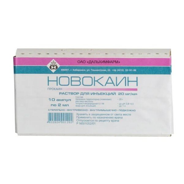 Местноанестезирующее средство с умеренной анестезирующей активностью и большой широтой терапевтического действия. Являясь слабым основанием, блокирует натриевые каналы, препятствует генерации импульсов в окончаниях чувствительных нервов и проведению импульсов по нервным волокнам. Изменяет потенциал действия в мембранах нервных клеток без выраженного влияния на потенциал покоя. Подавляет проведение не только болевых, но и импульсов другой модальности. При всасывании и непосредственном сосудистом введении в ток крови снижает возбудимость периферических холинергических систем, уменьшает образование и высвобождение ацетилхолина из преганглионарных окончаний (обладает некоторым ганглиоблокирующим действием), устраняет спазм гладкой мускулатуры, уменьшает возбудимость миокарда и моторных зон коры головного мозга. Устраняет нисходящие тормозные влияния ретикулярной формации ствола мозга. Угнетает полисинаптические рефлексы. Обладает короткой анестезирующей активностью (продолжительность инфильтрационной анестезии составляет 0.5-1 ч). Фармакокинетика Подвергается полной системной абсорбции. Степень абсорбции зависит от места и пути введения (особенно от васкуляризации и скорости кровотока в области введения) и итоговой дозы (количества и концентрации). Прокаин быстро гидролизуется эстеразами плазмы и печени с образованием двух основных фармакологически активных метаболитов: диэтиламиноэтанола (обладает умеренным сосудорасширяющим действием) и п-аминобензойной кислоты (является конкурентным антагонистом сульфаниламидных препаратов и может ослабить их противомикробное действие). T1/2 – 30-50 сек, в неонатальном периоде – 54-114 сек. Выводится преимущественно почками в виде метаболитов, в неизмененном виде выводится не более 2%.