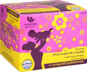 Прокладки-вкладыши для груди лактационные одноразовые Пелигрин с суперабсорбентом 110 мм 30 шт.