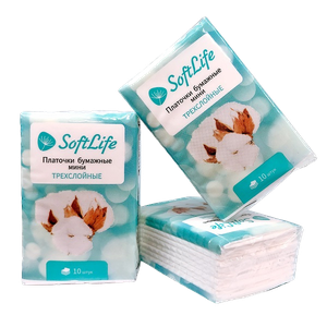Платки носовые SoftLife бумажные трехслойные мини 10х10 шт.