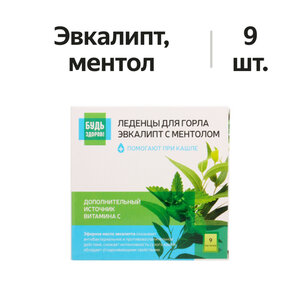 Erkapharm Леденцы для горла с витамином С эвкалипт и ментол 9 шт.