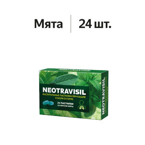 Neotravisil Пастилки растительные при кашле и боли в горле мята 24 шт.