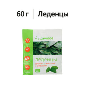 Vitaverde Леденцы эвкалипт с ментолом и витамином С 60 г
