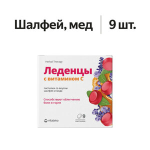 VitaScience леденцы с витамином С шалфей и мёд 9 шт.