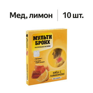 Мульти-Бронх леденцы мёд с лимоном без сахара 10 шт.