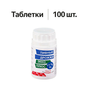 Экко Плюс Дрожжи пивные с магнием, кальцием и витамином D таблетки 100 шт.