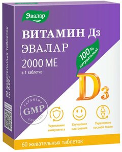 Эвалар Витамин Д3 Форте таблетки жевательные 5000 МЕ 60 шт.
