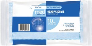 Маска трехслойная Medresponse на резинках медицинская 10 шт.