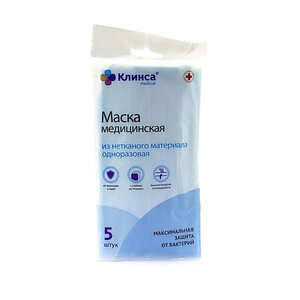 Маска медицинская одноразовая Клинса 3-х слойная с резинками 5 шт.