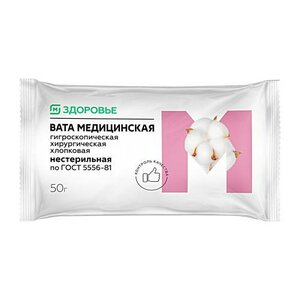 Вата Магнит Здоровье медицинская хирургическая нестерильная 50 г