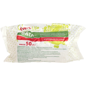 Вата медицинская Evers-Life хирургическая гигроскопическая стерильная, 50 г
