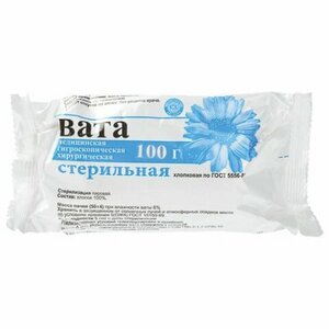 Вата медицинская стерильная хлопковая 100 г