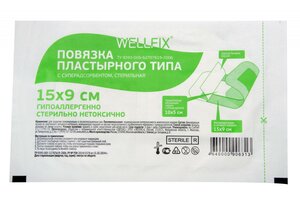 Повязка Wellfix пластырного типа с суперадсорбентом стерильная 15 х 9 см 50 шт.