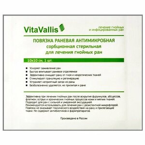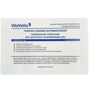Повязка раневая VitaVallis антимикробная сорбционная стерильная 14 x 10 см 1 шт.