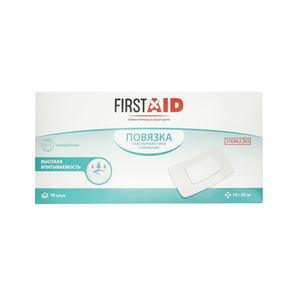 Повязка пластырного типа FirstAid стерильная высокая впитываемость 10 х 20 см 10 шт.
