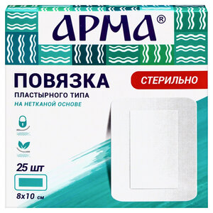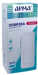 Повязка пластырного типа Арма стерильная 10 см х 25 см 25 шт.