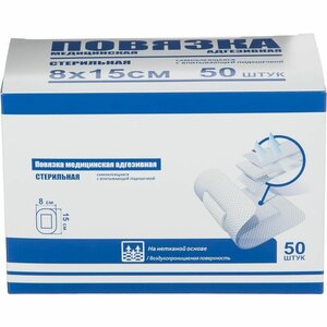 Повязка медицинская адгезивная стерильная 15 х 8 см 50 шт.