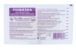 Повязка пластырного типа с адсорбирующей подушечкой стерильная 9 х 15 см