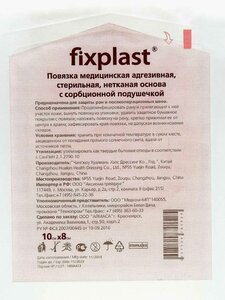 Повязка Fixplast медицинская адгезивная с сорбционной подушечкой на нетканой основе 10 х 8 см 1 шт.