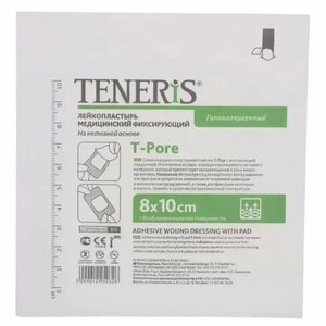 Лейкопластырь Teneris T-Pore фиксирующий на нетканной основе 8 х 10 см 10 шт.