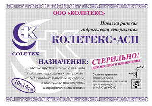 Повязка Колетекс-АСП раневая гидрогелевая стерильная 10 х 14 см