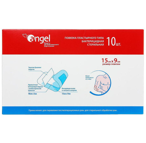 Повязка пластырного типа Angel стерильная бактерицидная 15 х 9 см 10 шт.