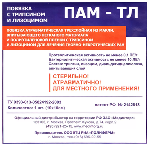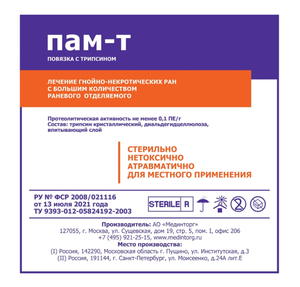 Повязка ПАМ-Т стерильная с трипсином 10 см х 10 см 1 шт.