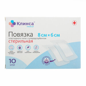 Повязка медицинская адгезивная 10 см х 20 см 50 шт.