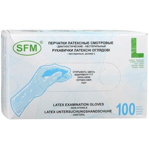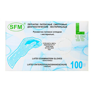 SFM перчатки смотровые латексные нестерильные неопудренные 100 шт.(50 пар) размер L