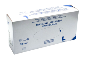 Перчатки смотровые нитриловые неопудренные нестерильные размер L голубые 50 пар