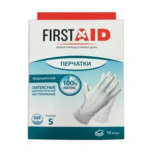 Перчатки FirstAid латексные диагностические нестерильные опудренные размер S 10 шт.