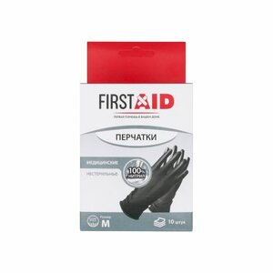 Перчатки диагностические FirstAid нитриловые нестерильные неопудренные размер M черные 10 шт.