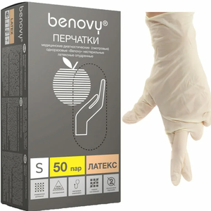 Перчатки Benovy латекс неопудренные цвет натуральный размер S 50 пар