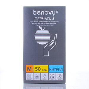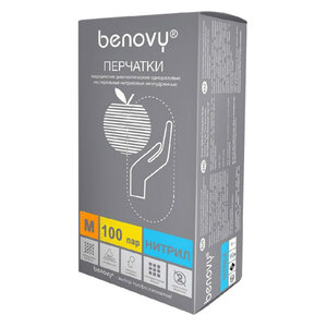 Перчатки Benovy нитриловые нестерильные неопудренные размер S 100 пар