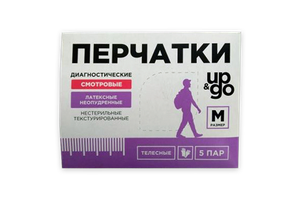 Перчатки Up&GO диагностические смотровые нестерильные латексные неопудренные текстурированные телесные размер M 5 пар