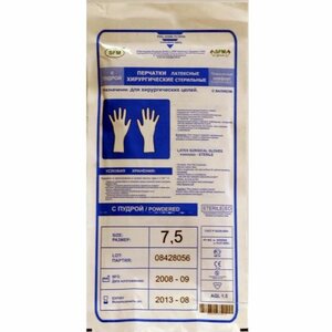 Перчатки хирургические SFM латексные стерильные опудренные размер 7.5 1 пара