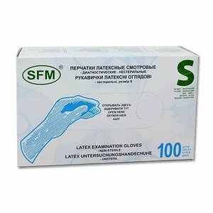 Перчатки SFM латексные смотровые нестерильные опудренные размер S 100 шт.