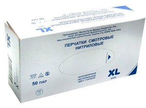 Перчатки смотровые нестерильные нитриловые неопудренные размер XL голубые 50 пар