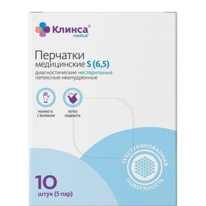 Перчатки медицинские латексные Клинса диагностические нестерильные неопудренные размер S 5 пар