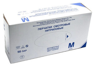 Перчатки смотровые нитриловые неопудренные нестерильные размер M голубые 50 пар