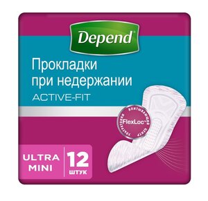 Прокладки Depend Active-Fit Ultra Mini урологические 12 шт.