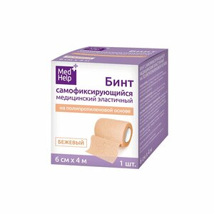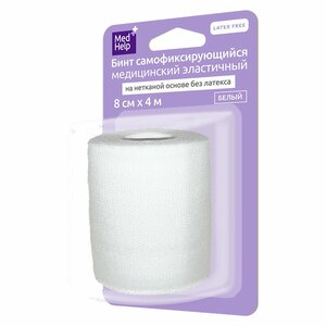 Бинт MedHelp эластичный самофиксирующийся на полипропиленовой основе белый 8 см х 4 м