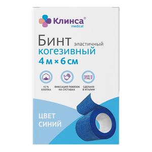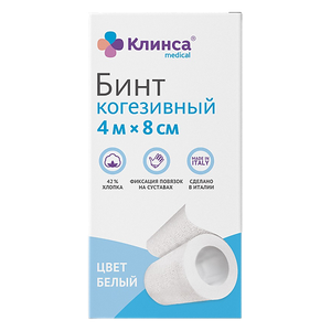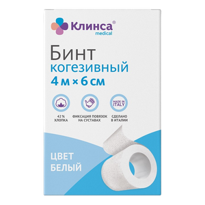 Клинса Бинт когезивный самофиксирующийся 4 м х 6 см белый