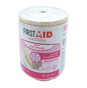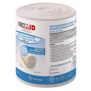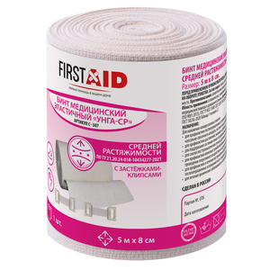 Бинт FirstAid эластичный компрессионный УНГА-ВР высокой растяжимости 8 см х 1.5 м